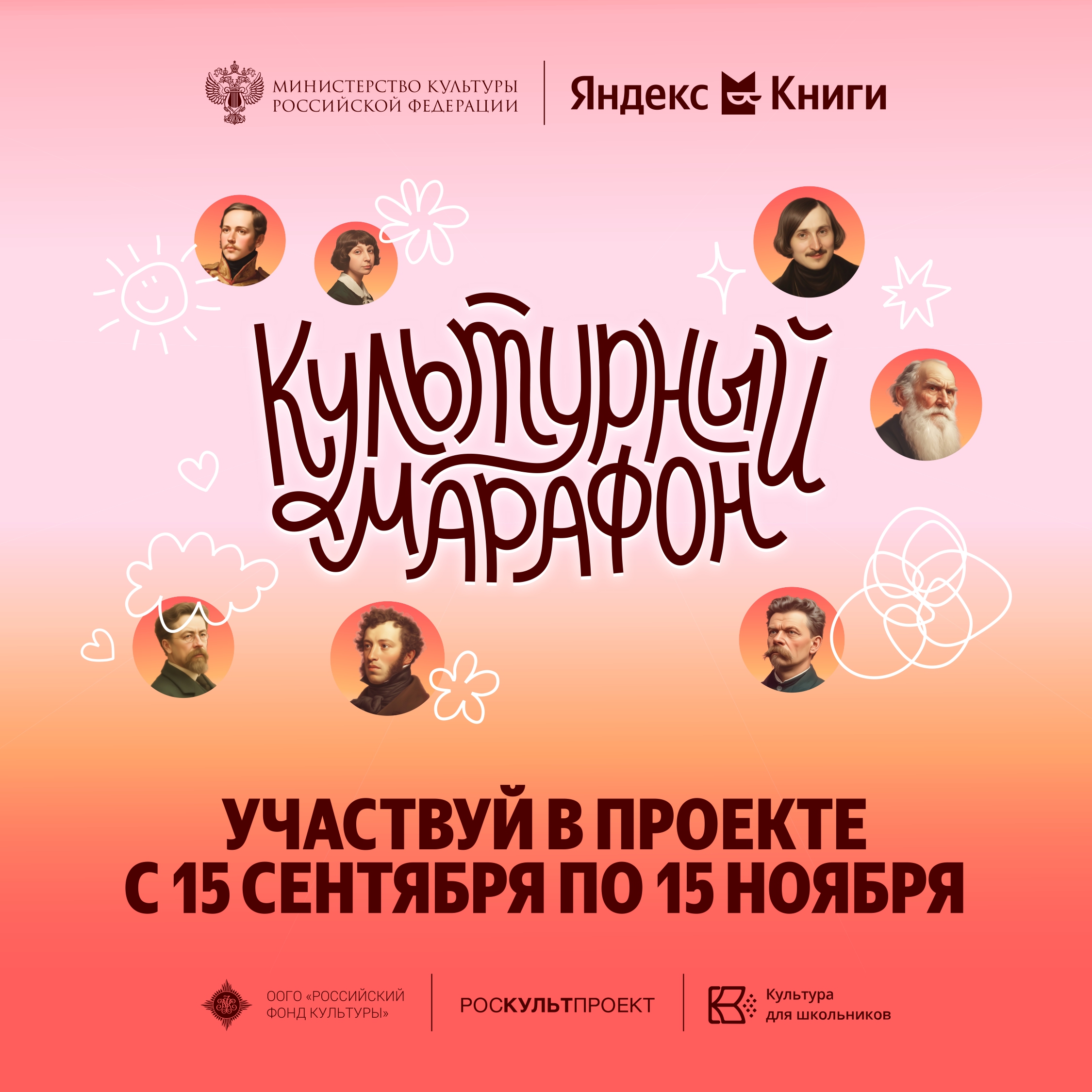 Все события будут проходить в удобном онлайн-формате. Подать заявку можно на официальном сайте «Культурного марафона» –http://культурныймарафон.рф (ссылка будет доступна с 15 октября). Также подробная информация об Акции размещена на портале «Культурадляшкольников.РФ».